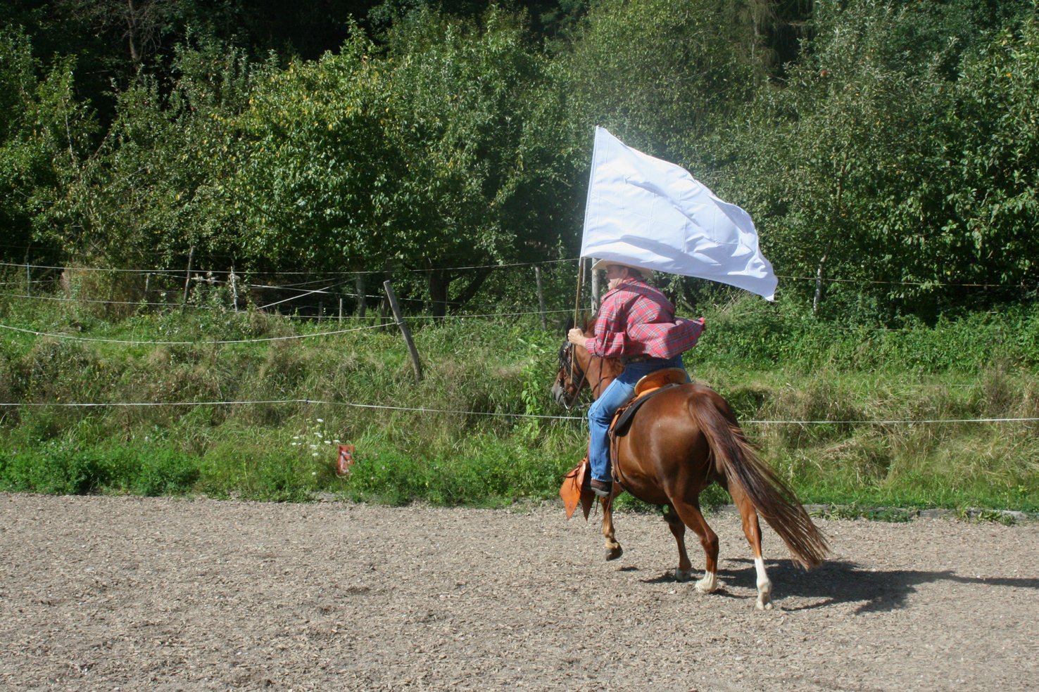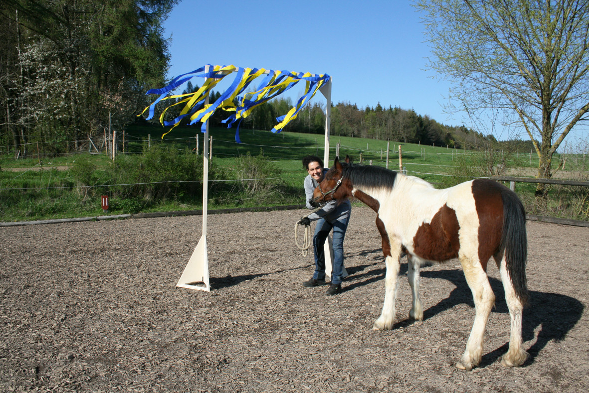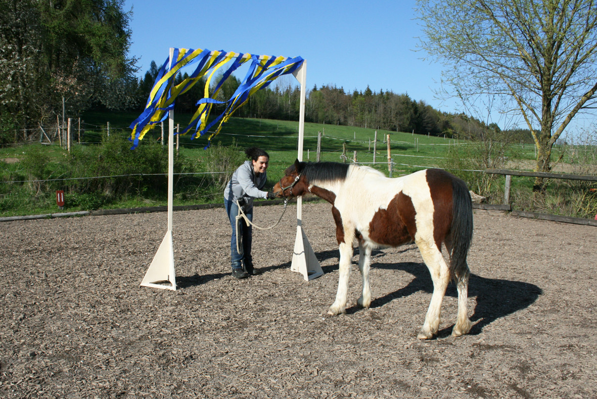 Haben Sie schon einmal versucht neben dem Pferd mit einer wehenden Fahre herzulaufen oder gar damit zu reiten? Noch nicht, dann probieren Sie es doch einfach einmal aus.