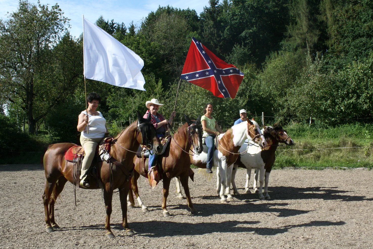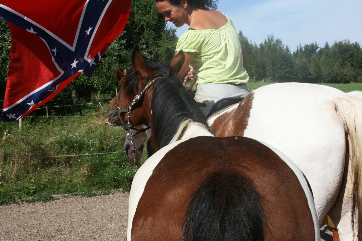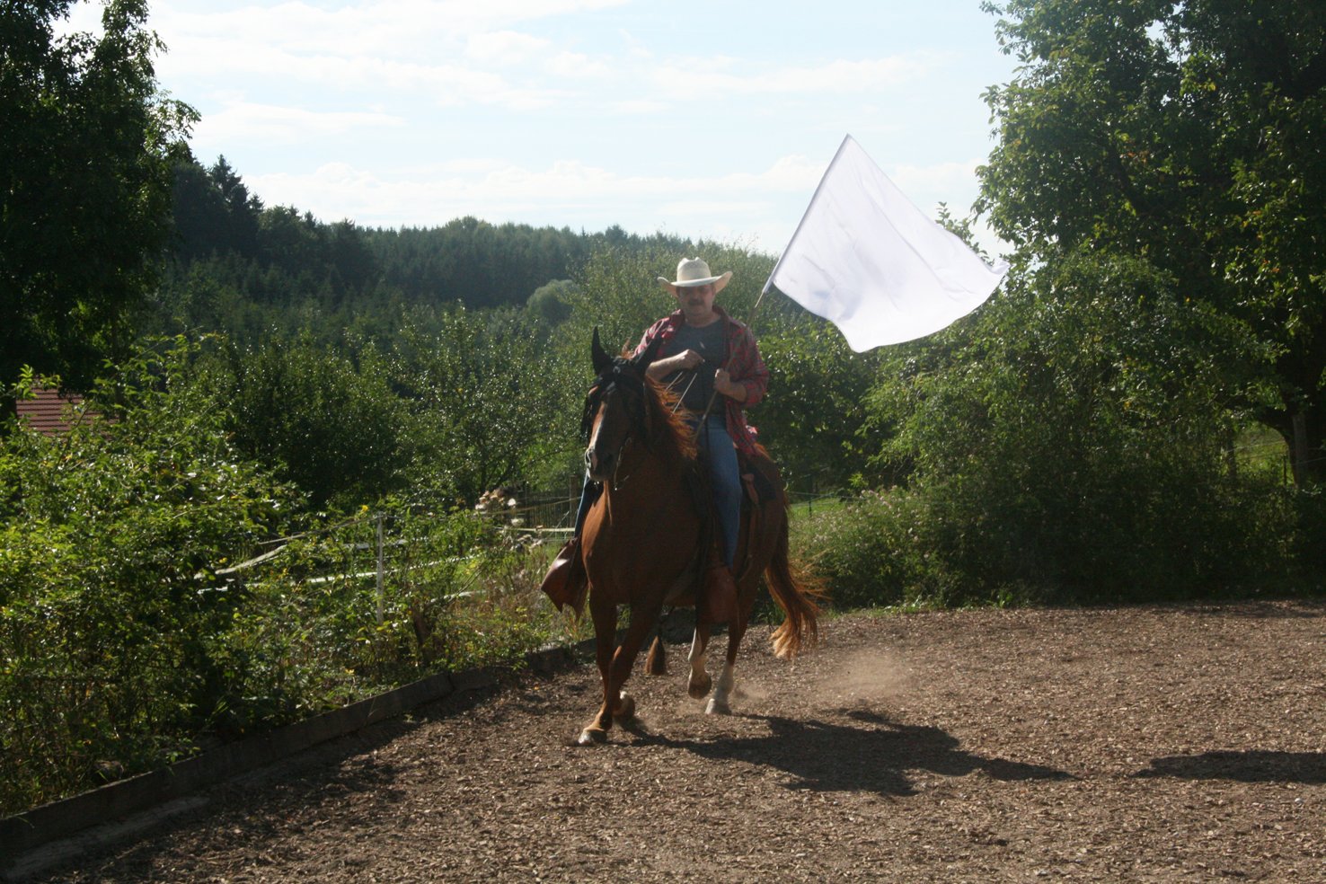 Haben Sie schon einmal versucht neben dem Pferd mit einer wehenden Fahre herzulaufen oder gar damit zu reiten? Noch nicht, dann probieren Sie es doch einfach einmal aus.