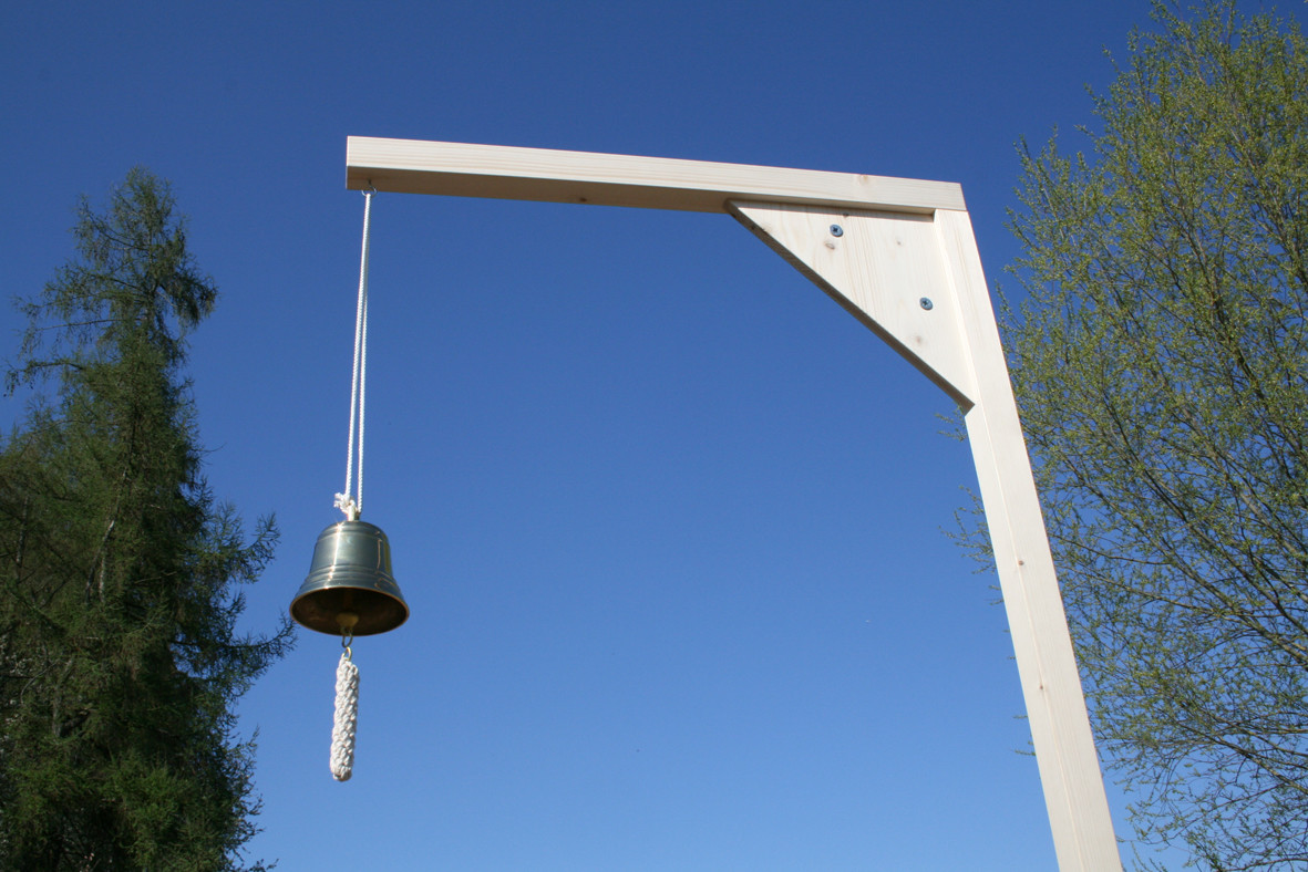 Bestehend aus zwei Stehern mit einer Gesamthöhe von 250cm die beide einem kurzen Ausleger mit 70cm Länge für z.B. das Glöckchen haben. Passend dazu gibt es eine langer Stange mit 158cm Länge um die beiden Steher zu verbinden und ein komplettes Tor zu erhalten.