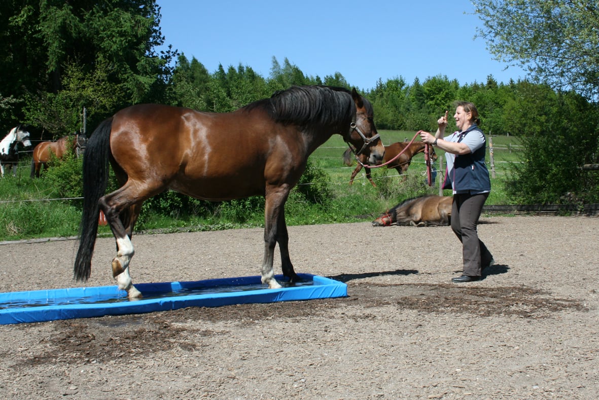 Wer mag kann darin auch gleich die Hufe wässern.