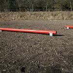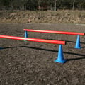 Wenn man selber und auch das Pferd sicherer geworden ist, kann man die unteren Ausleger weglassen und nur die normale Halterung benutzen. Die dann natürlich auch beim anstoßen umfällt, so wie es sein sollte.