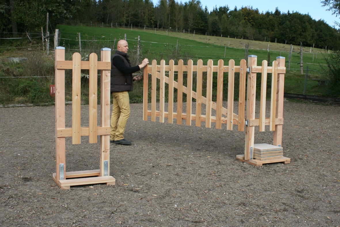 Diese mobilen Tor sind sehr leicht und besteht aus 3 Teilen. Das Tor selber hat eine Breite von 200cm und man kann es leicht ein und aushängen, wenn man z.B. ein Seil einhängen möchte oder alles schnell einmal abbauen möchte.
