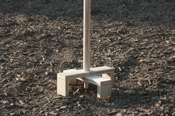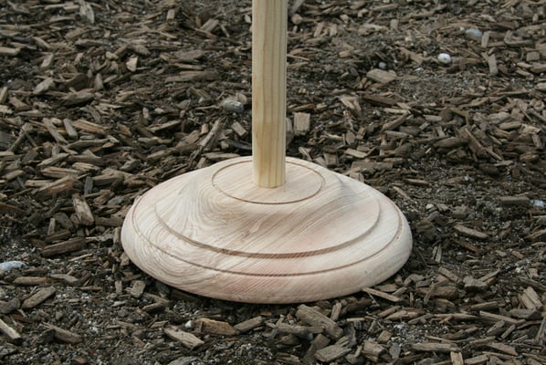 Die Holzvariante finde ich besonders schick. Sie ist speziell von unserem Drechsler für diesen Einsatz gedrechselt worden. Der leichte Holzstab mit 2,8cm Durchmesser und einer Höhe von 2 Metern, wird mithilfe von Holzleim einfach in den Fuß geklebt.