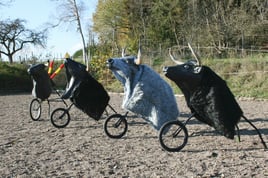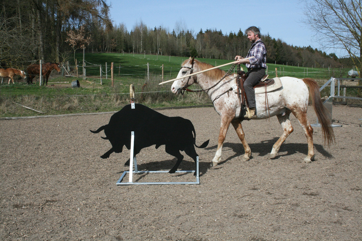 Fahrbare Stiere für das Training als Stierkämpfer zu Pferde oder vom Boden aus.
