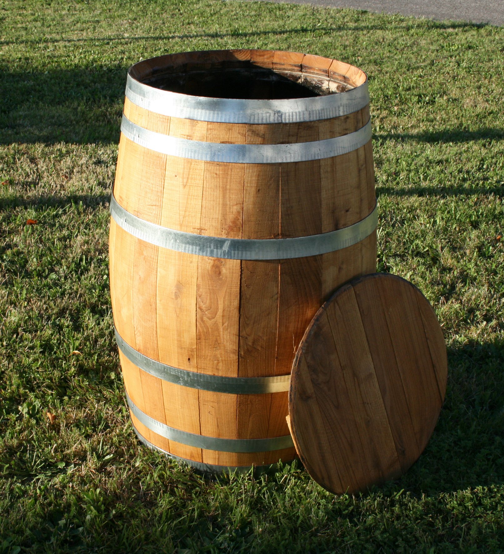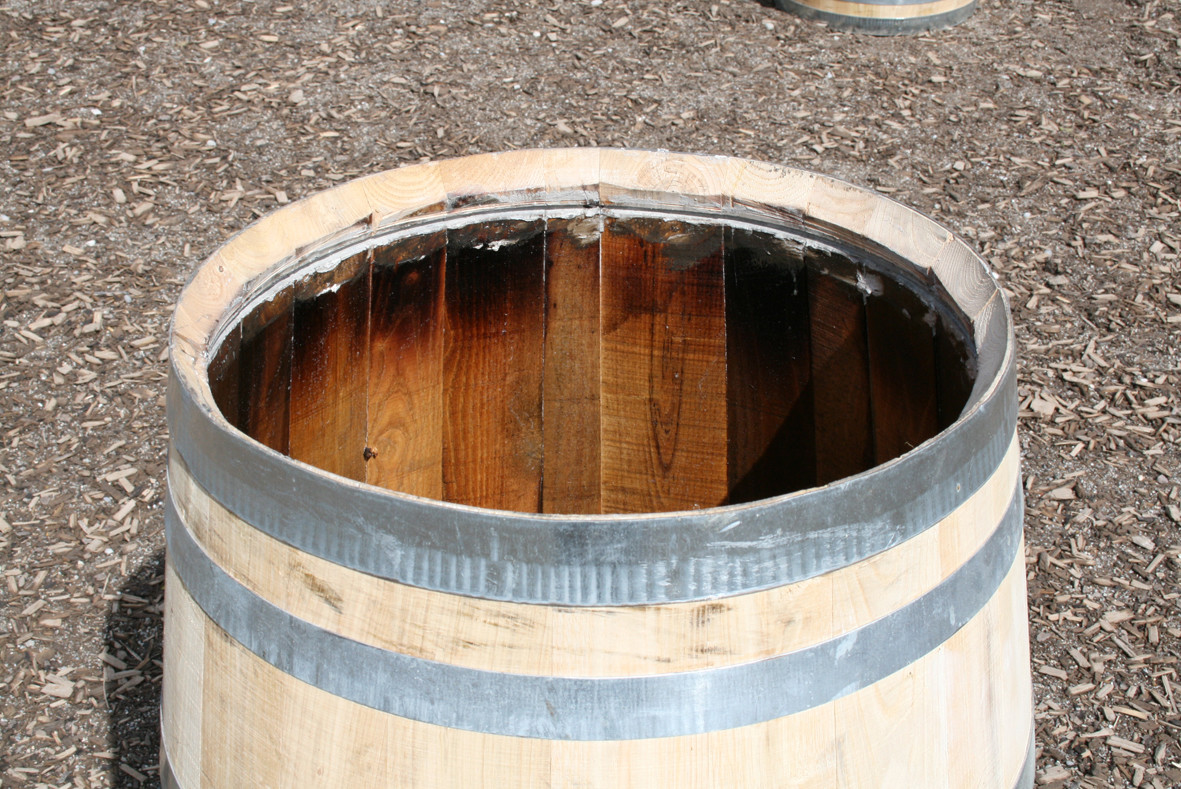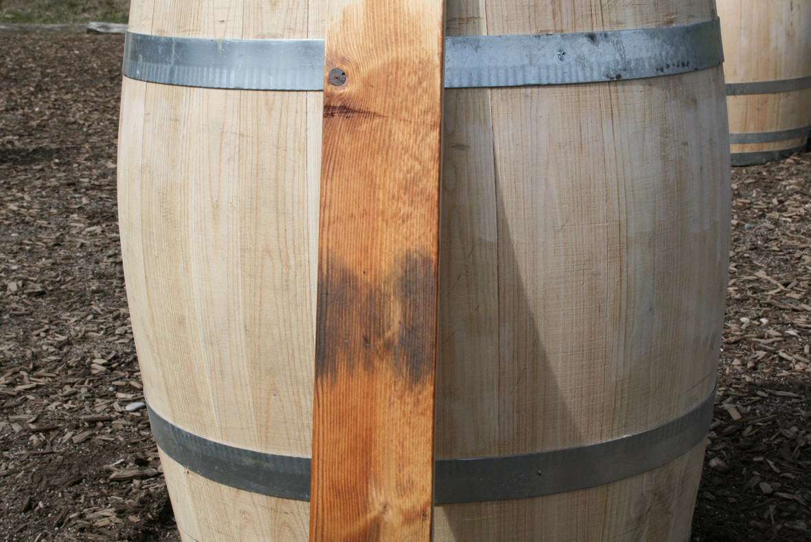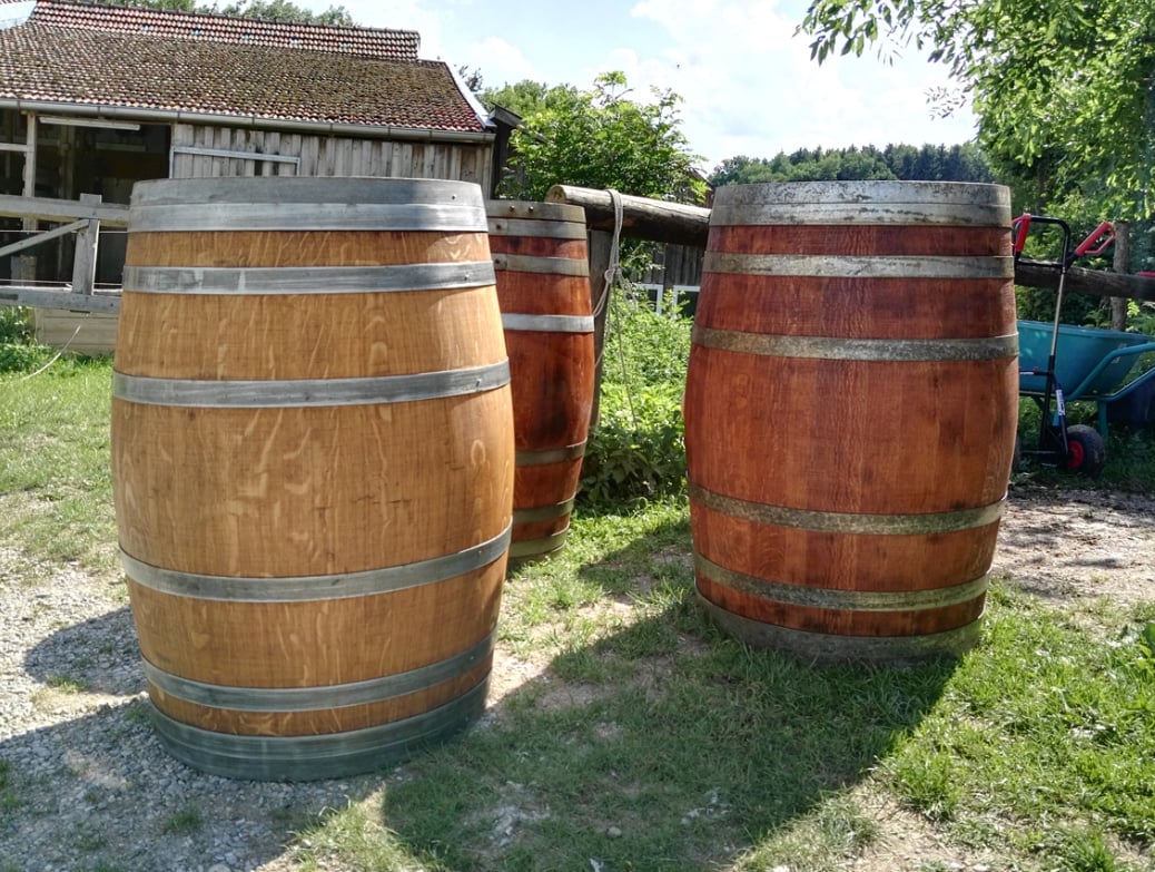 Die Fässer sind innen gewachst, so dass sie auch als Regentonne genutzt werden können.