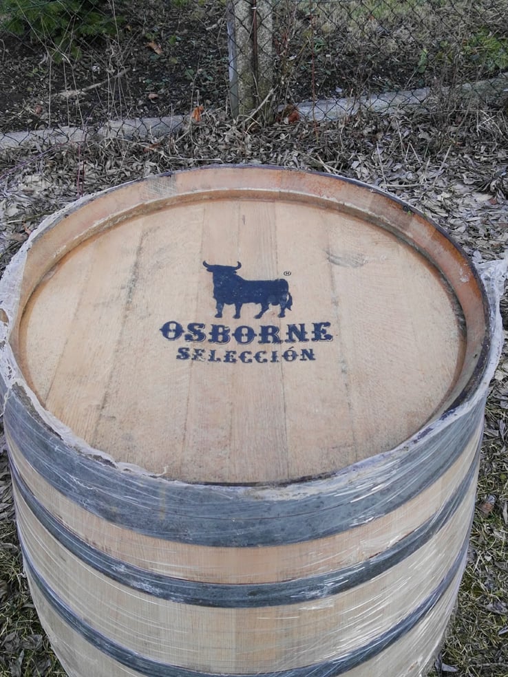 Innen entströmt noch der restliche Duft des spanischen Osborne, außen sind die Fässer neu abgeschliffen und zur farblichen Veredlung bereit.